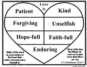 This weeks bonus coloring page is a mini poster of 1 Cor. 13